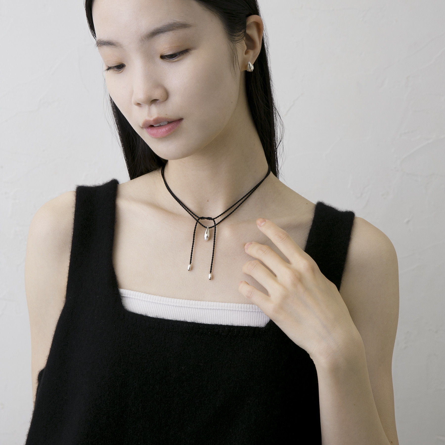 雨が降る静寂の中で、霧に包まれた淡い景色の記憶をイメージしたシリーズ。淡い光沢を放つパールのしずくに、地面に舞い降りた雨の粒を織り込んで表現しています。