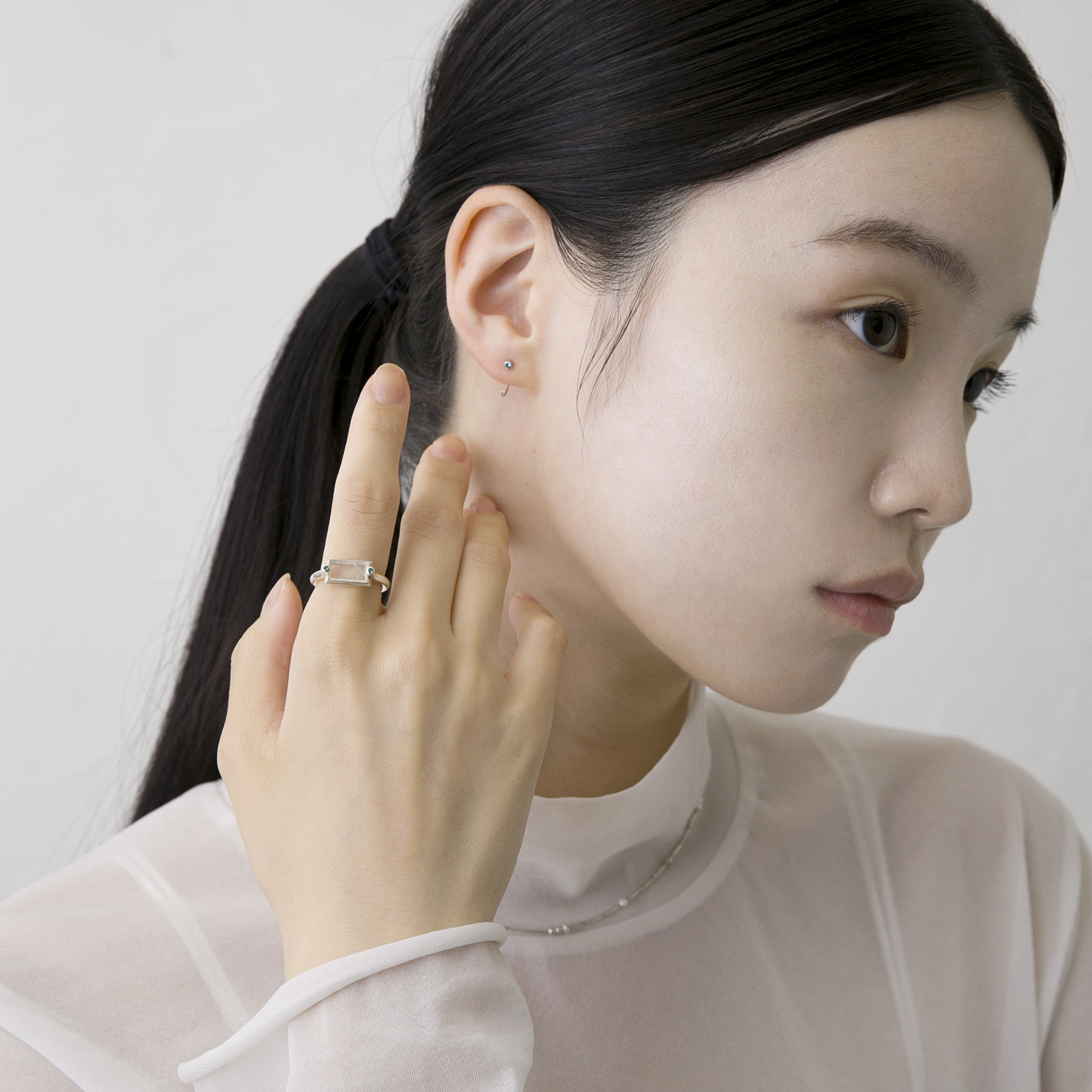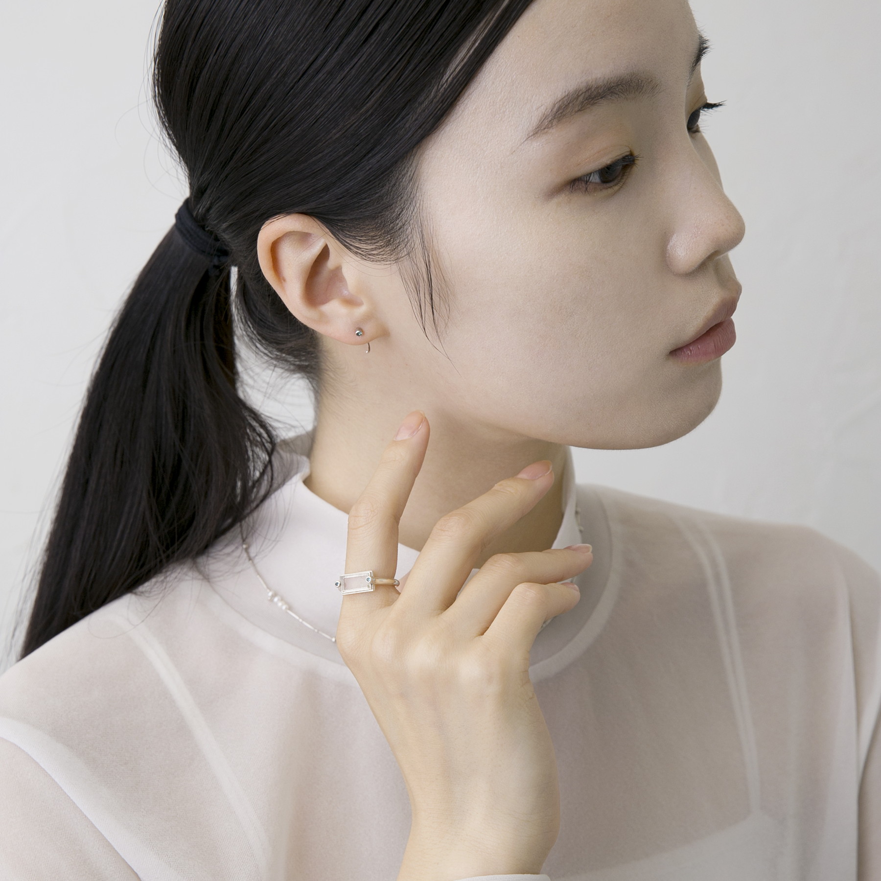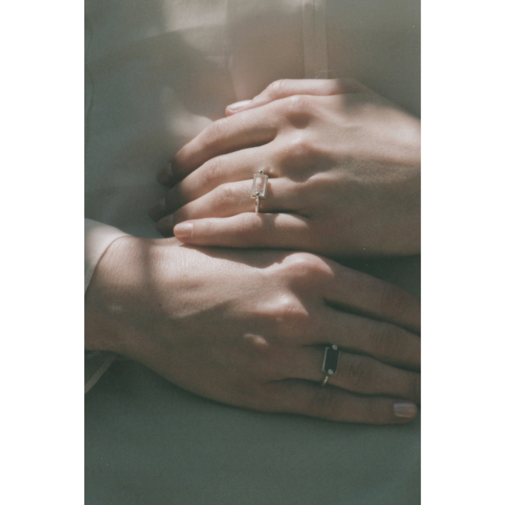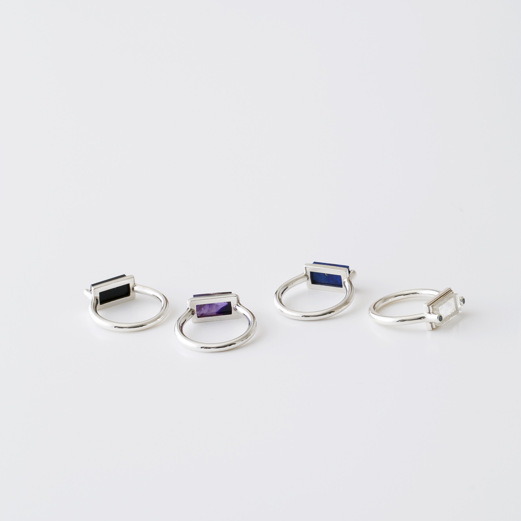 太陽の光を浴びてキラキラと輝く色とりどりの石を見て、心が躍るような気持ちになった記憶をインスピレーションに。長方形にカットされた天然石は絵画のように美しく、リングは無駄のない洗練されたデザインに仕上げました。