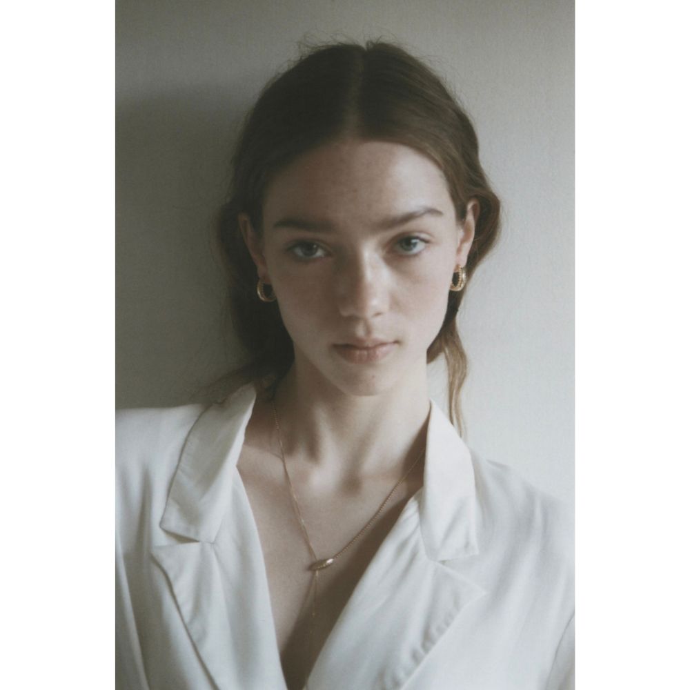 顔まわりを、自然に印象づけるフープピアス。